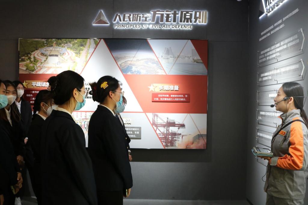 活动中,国防动员办公室派工作人员带领大家参观展馆,结合战争空袭和公共安全素材,开展急救培训、趣味答题、高铁逃生等项目,拓展大家的视野,增强大家的国防与安全意识。