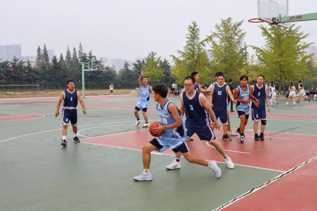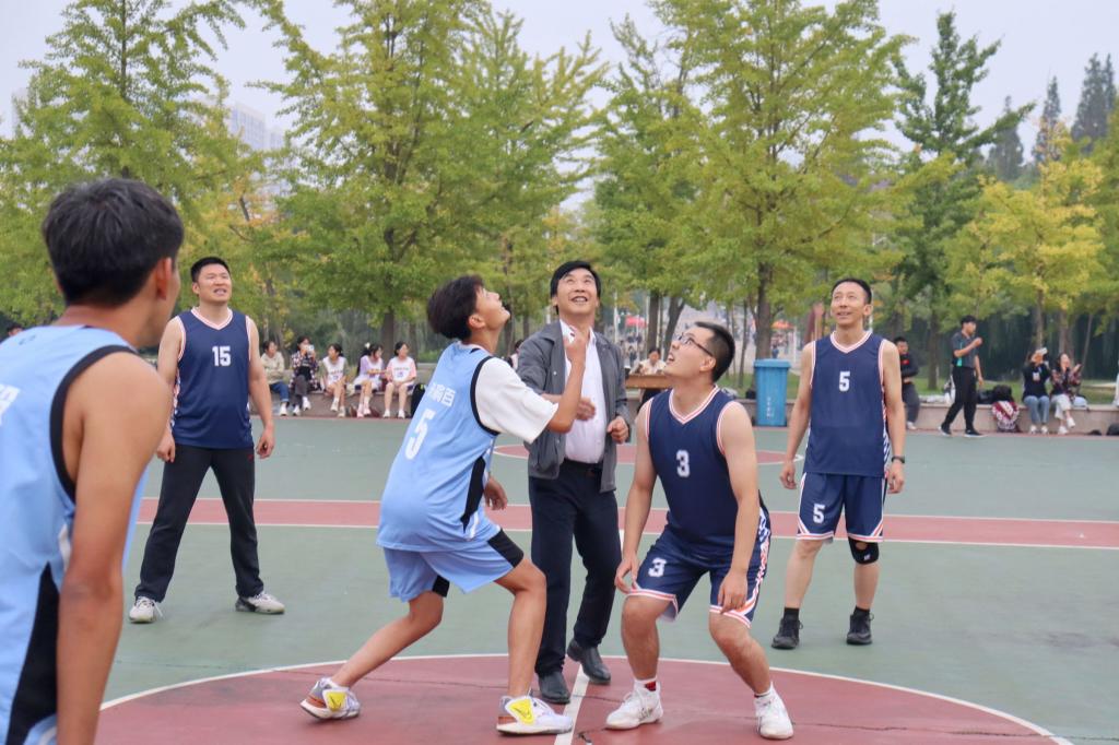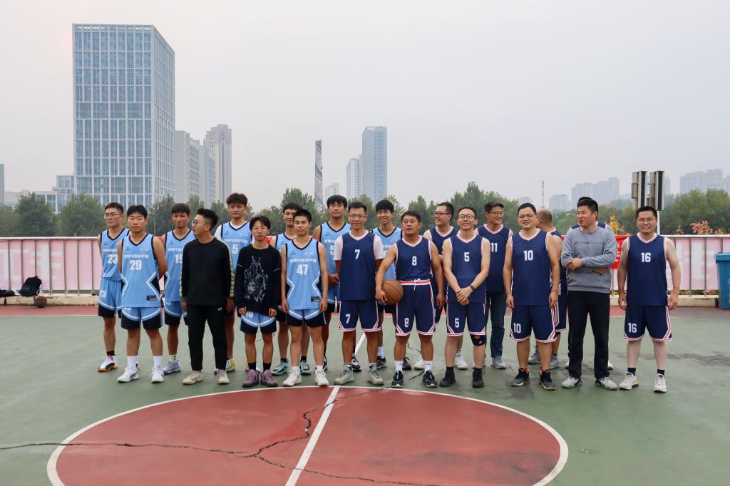 贺山峰、张学波、郭付友、陈艳峰、贾子康等老师组成的教师代表队和学生代表队参与本次联谊赛,苏占兵书记为联谊赛开球,张全景院长和辅导员陈鑫老师、董青老师观看了比赛。