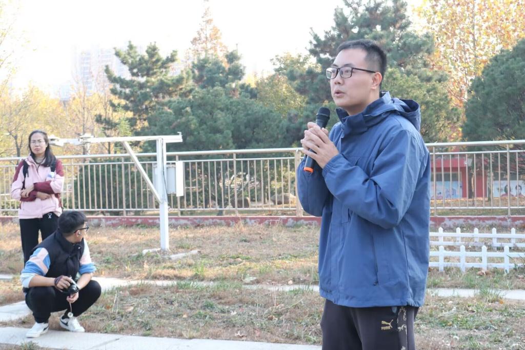 气象观测站,贾子康详细解说了气象站的观测仪器,同学们认真学习了观测方法并在老师的指导下进行了观测,进一步了解了收集、分析各类气象数据的知识。随后,大家一同来到日月广场,同学们参观了孔子像,深切地感受到了曲园深厚的历史文化底蕴。跟随志愿者的脚步,同学们来到番茄社区
