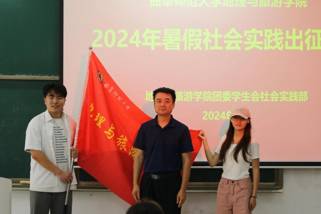 于S103举行2024年暑假社会实践出征仪式。本次活动由团委学生会社会实践部承办,学院党委副书记刘伟、团委书记李梅出席,各社会实践团队成员积极参加。