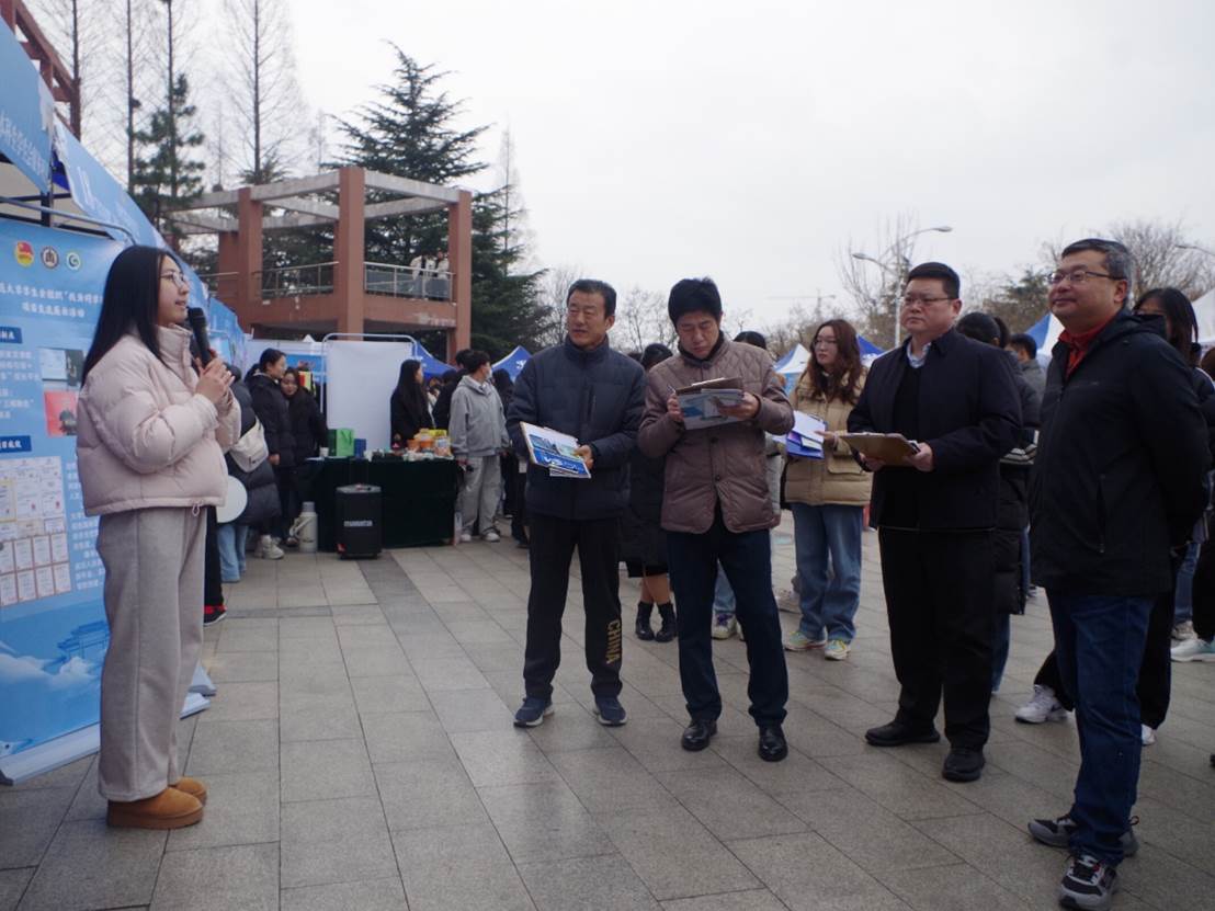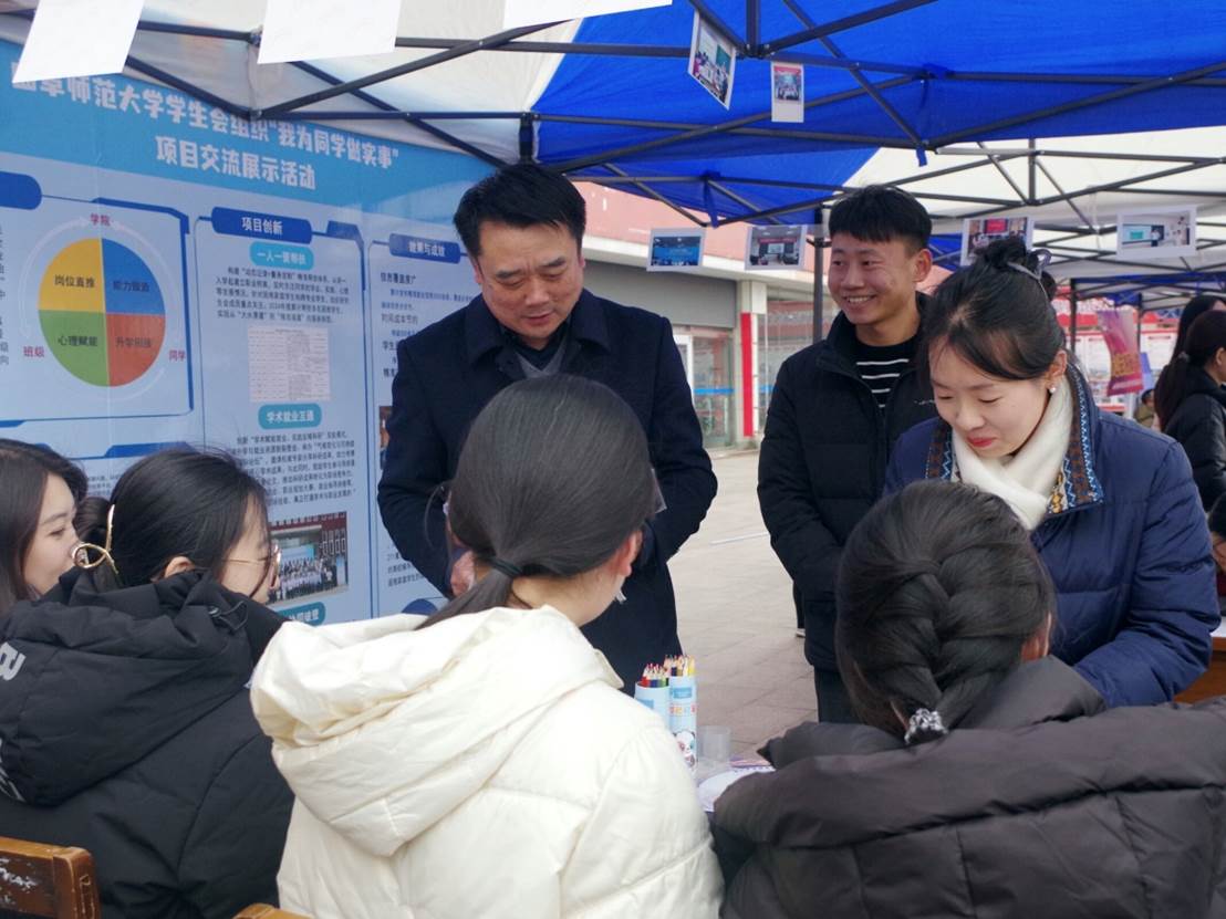 于日照校区明心扬帆就业广场举办“我为同学办实事”项目交流展示活动,学校党委常委、副校长胡凡刚,校团委书记孔轶众、校武装部副部长赵秀臣、校团委副书记徐哲等领导现场指导,番茄社区