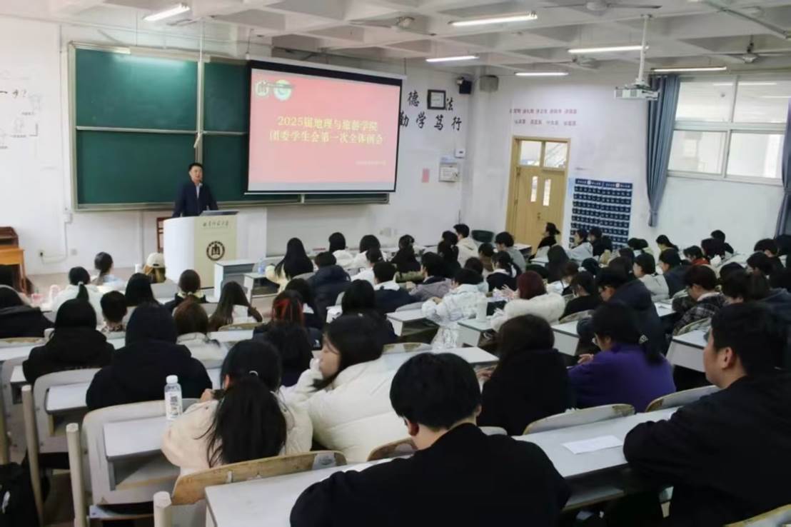 于E103召开2025届团委学生会第一次全体例会暨消防安全教育会议。学院党委副书记刘伟、团委书记李梅出席,团委学生会主席尹新颖主持,团委学生会全体成员参加。