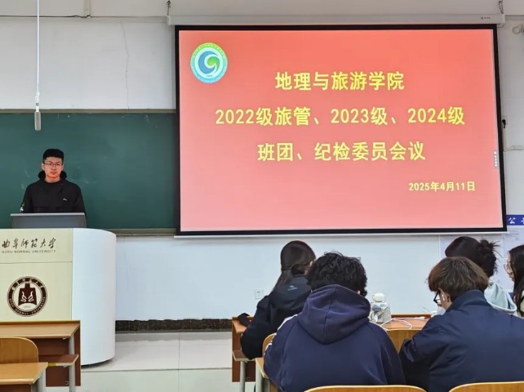 于S105召开2022级旅管、2023级、2024级班团、纪检委员会议,团委学生会纪检部部长任树森主持,2022级旅游管理专业及2023、2024级各班班长、团支书、纪检委员参加。