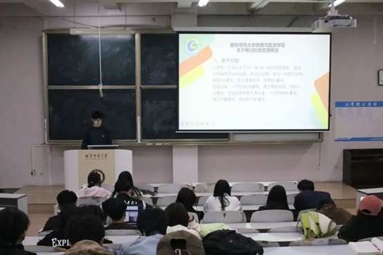 会上,宿舍管理部成员围绕宿舍管理各方面问题展开详细讲解。系统解读日常检查与随机抽查相结合的晚归检查制度,要求各宿舍长切实履行管理职责,严格落实每日考勤制度,确保宿舍成员按时归寝,共同守护住宿安全底线,并明确外宿的申请流程。随后,针对近期卫生检查出现的共性问题,进一步细化卫生检查标准,在各方面提出具体要求,倡导全体同学共同维护干净舒适的生活空间。宿舍管理部成员通过图文并茂的方式,详细阐释违规电器的界定标准和具体类型,同时结合校园安全实际案例,强调违规用电的潜在风险和安全隐患,要求全体人员增强安全防范意识,杜绝使用违规电器,做到人走断电,防患于未然。