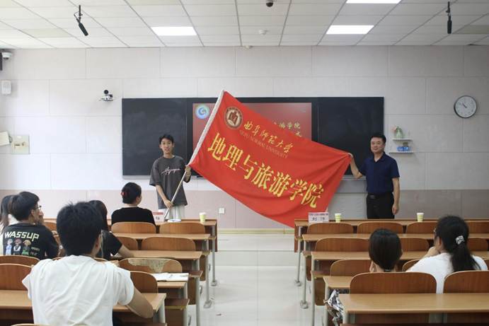 随后,刘伟为“星光不负守田人”社会实践队授旗。旗帜不仅是团队象征,更是实践队前进的方向,承载着服务社会的使命担当。这一仪式传达出学院对各实践团队的深切期望,激励各团队以此为引领,充分展现青年学子风采。