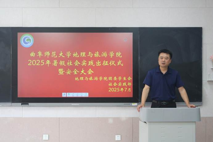 于S205举行2025年暑假社会实践出征仪式暨安全大会。本次活动由团委学生会社会实践部承办,学院党委副书记刘伟、团委书记李梅出席,各社会实践团队成员积极参加。