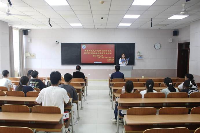 社会实践部成员于珂瑶详细讲解暑期社会实践安全注意事项与总则。她具体介绍社会实践团队的成员组成及具体职责,强调安全是一切活动的根基,要求全体成员严格遵守纪律,确保实践活动有序开展。