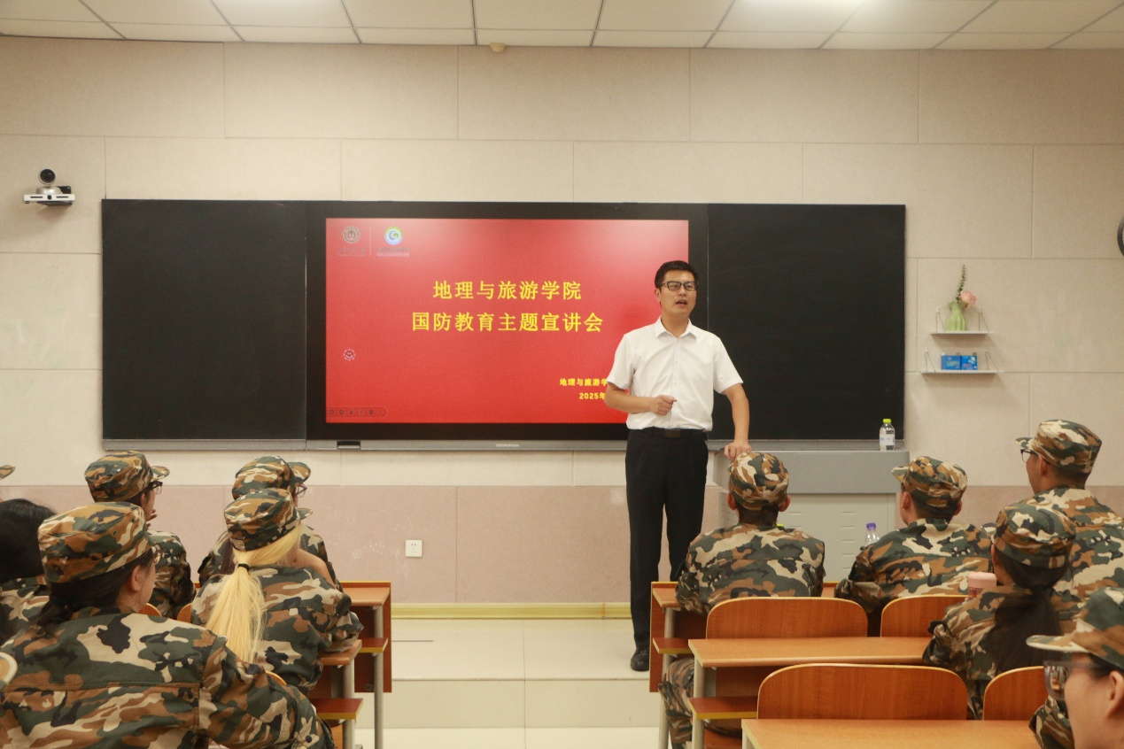 宣讲会上,马佳豪同学结合自身军旅经历,围绕军队简介、部队生活、服役价值及训练缩影四个板块展开系统介绍。他概述了中国人民解放军自1927年南昌起义以来的光辉历程,并详细解读2024年调整后形成的“四大军种+四大兵种”现代化军兵种结构,强调随着军队信息化、科技化水平不断提升,大学生士兵正日益成为国防建设的重要力量。他以亲身经历生动讲述部队从清晨出操到夜间执勤的日常生活以及严格统一的纪律要求,表示军队不仅是执行任务的集体,更是锤炼意志、重塑品格、实现个人成长的重要平台。他还特别提到,地理与旅游学院相关专业的学生在测绘、制图等领域具备专业优势,可在部队中发挥独特作用。