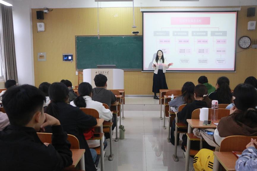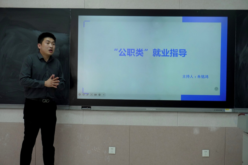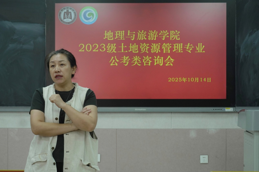 相关专业在公务员招录中适配性强,岗位需求量大,希望同学们重视这一发展方向,提前了解、科学准备。随后,公务员考试培训老师朱铭鸿围绕“公职类考试优势”“备考规划”展开解读,重点剖析2023级学生的三大核心优势:一是身份优势,应届生身份可规避往届生竞争,同类岗位进面分通常低约5分;二是专业优势,考公针对地理科学、土地管理类专业的专项岗位数量充足,竞争压力显著小于其他专业;三是备考优势,当前公务员、事业编、军队文职、央国企考试内容高度重合,一次备考可参与6-7次考试,上岸机会多元。朱铭鸿还现场分享岗位招聘数据、考试时间节点,帮助同学们进行考公规划。
