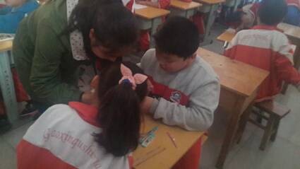 协会成员在每周三中午12点集合后,一同乘车前往高新区实验小学进行支教。在学校老师分配好任务后,协会成员各担其责,到指定的班级进行授课。
