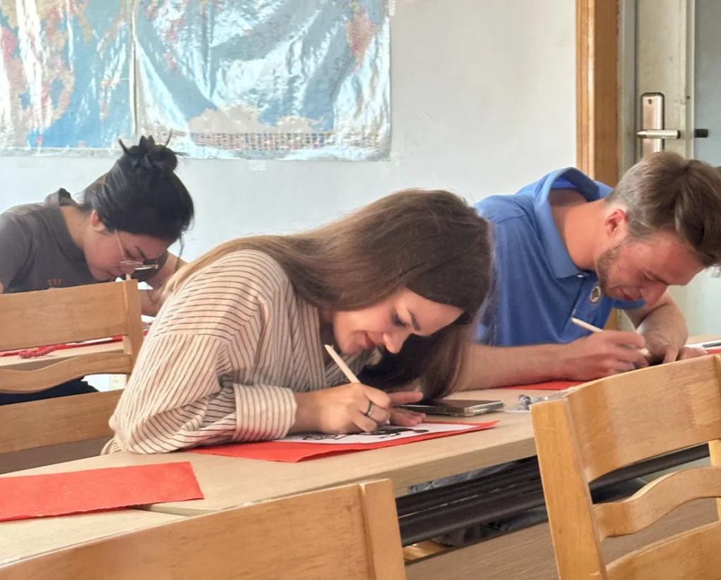 活动中,剪纸协会的成员们首先向留学生介绍了剪纸的历史与文化内涵,并展示了各种精美的剪纸作品,从简约优雅的植物图案到复杂生动的戏曲人物,每一件作品都令在场的留学生们赞叹不已。随后,进入了实践环节。留学生们开始尝试制作自己的剪纸作品,面对初次接触这项技艺的挑战,留学生们表现出了极高的兴趣和热情,而剪纸协会的成员们则耐心地帮助他们,详细讲授剪纸的基本技巧以及刻刀的用法。经过一番努力,每个人的作品都逐渐展现出独特的风采,成就感和喜悦感溢于言表。