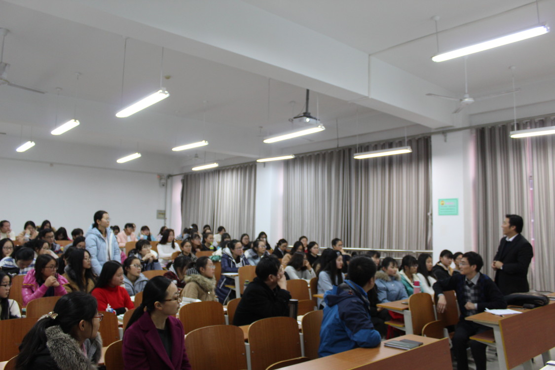 雄厚的实力、学院该专业的特色及广阔的发展前景的同时,又就大学生应有的学习态度和方法做了认真的阐述,通过列举具体的优秀大学生来说明大学学习的重要性。讲解结束之后,同学们提出了心中的疑惑,老师们针对具体问题一一进行了认真解答。