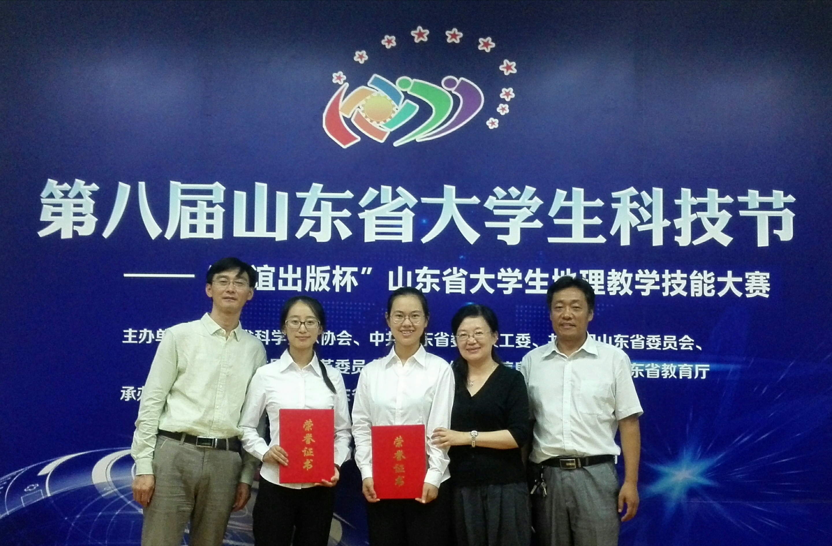 近日,第八届山东省大学生科技节主要活动之一—“友谊出版社杯”山东省大学生首届地理教学技能大赛决赛成绩公布,我校获得特等奖、一等奖和二等奖各一项,取得总成绩全省第二的好成绩。