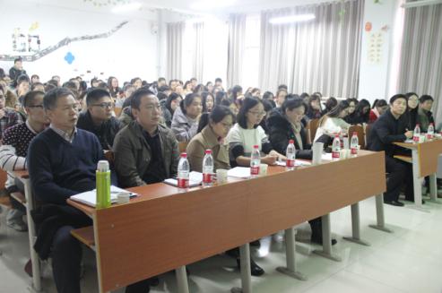 图:正在认真听报告的老师和同学