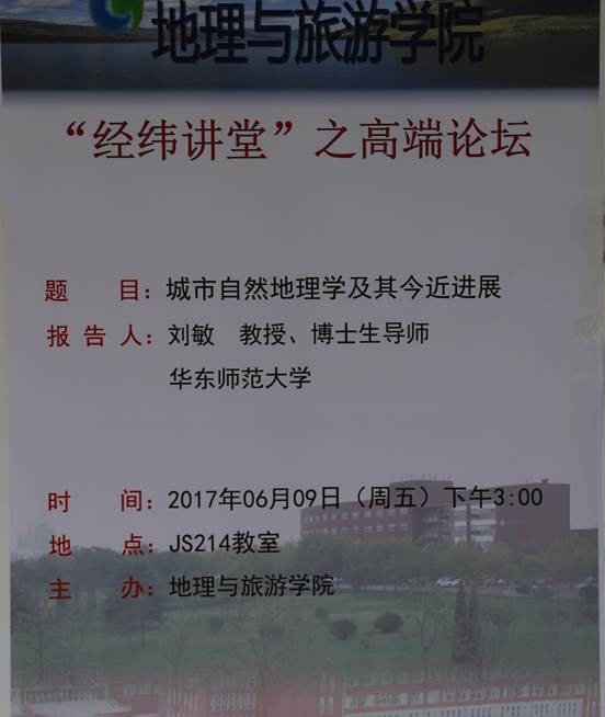 主持自然地理、地图学与地理信息系统专业硕士研究生答辩期间作了题为《城市自然地理学及其今近进展》的学术报告。相关专业本科生、研究生以及有关教师聆听了报告,报告会由副院长谢小平教授主持。