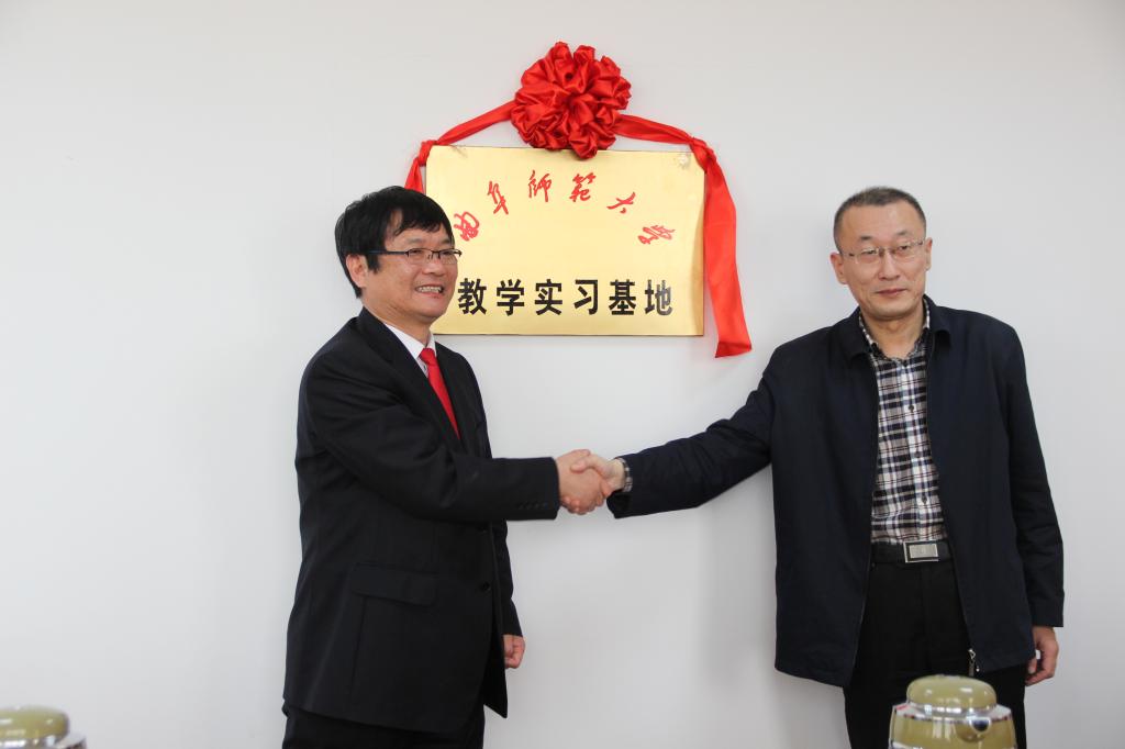 与日照市环境监测站签订教学实习基地协议,并举行揭牌仪式。
