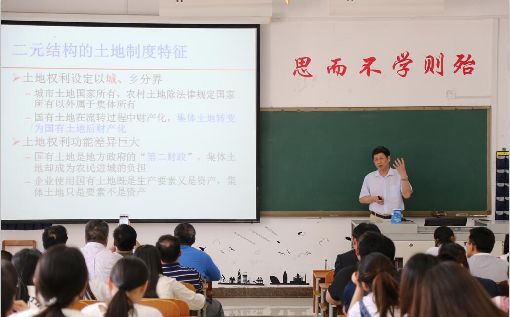 院长张全景教授主持,学院党委书记胡长春、教授委员会主任代合治教授以及王慧、刘志刚、李俊莉、于伟、刘飞、吕晓、王萍、郭付友等相关专业老师出席,土地利用管理方向的研究生及土地资源管理专业本科生一百余人参与。