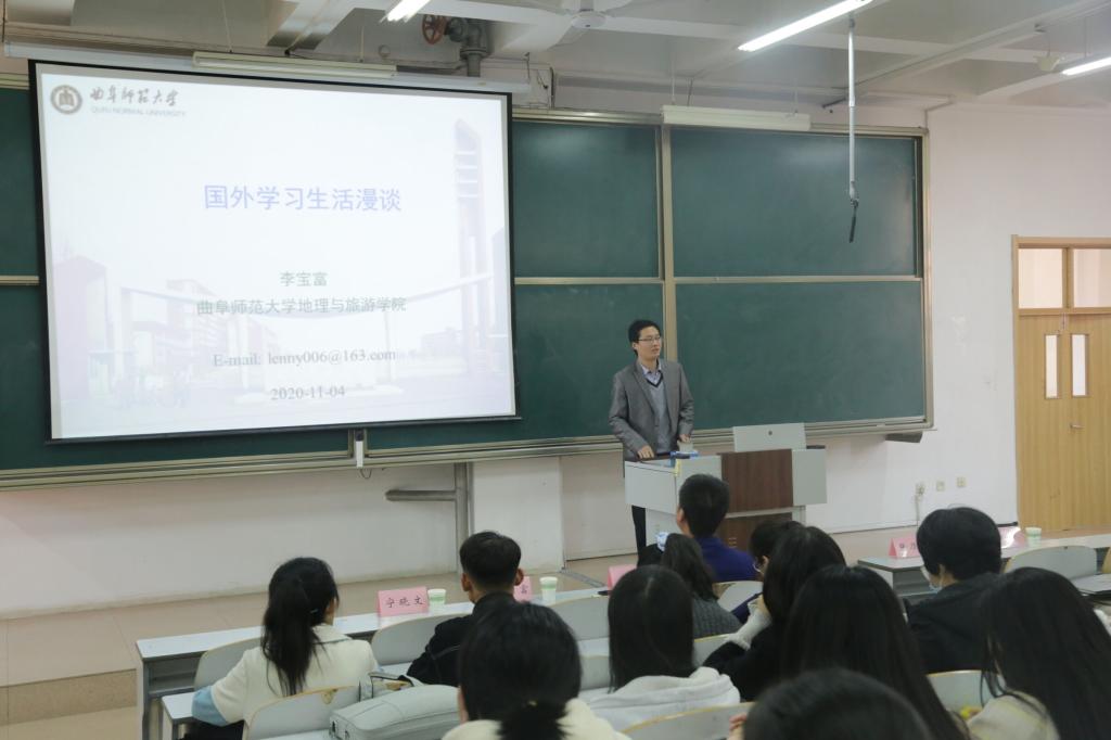 会议伊始,刘伟对李宝富副教授的到来表示热烈欢迎,并简述本次活动的目的意义,介绍了李宝富老师的基本情况。希望同学们用心聆听,认真学习。李宝富老师结合自己两年的美国访学经历,从美国访学、本科生考研问题、近期个人学术研究成果三个方面与同学们进行了分享交流。交流会中,李宝富谈到,随着全球化的发展和中国“一带一路”倡议的推进,中国越来越多地参与到全球治理中,这就要求同学们在掌握专业知识和技能的同时,必须具备国际视野、跨文化沟通和协作能力。他通过精美的照片向大家展示其在美国达特茅斯学院的访学研究和校园生活,展示了不同的人文风情,重点讲述自己对学术的新认识,即研究者在“专、精”的同时也要兼顾“广、博”。最后,李宝富表示,希望自己的讲解能给同学们带来更深远的思想碰撞和智慧启迪。通过讲解,同学们对相关问题产生浓厚的兴趣,李老师结合近期的学术研究与同学们展开学术研讨,同学们积极与老师进行互动讨论。