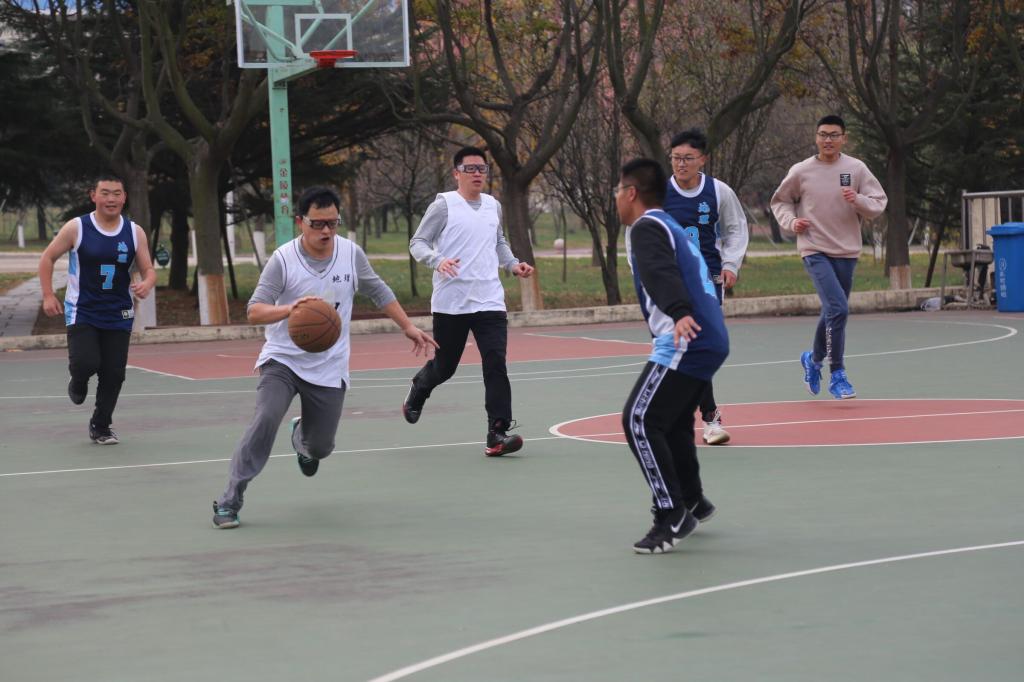 赛场上,老师与同学们热情高涨,挥洒汗水,释放活力,比赛氛围不断升温。篮球赛上,张学波、郭付友、李宝富、蔡利平、贺山峰老师组成的教工队与番茄社区