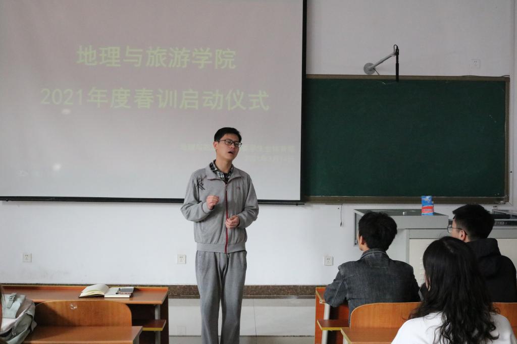 于S314举行2021年度春训启动仪式。2020级辅导员田青,教练员陈文龙、郑喆以及2019级和2020级学生代表参加。