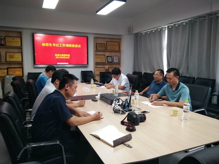 会上,苏占兵、张全景向徐思生书记就2021年上半年学院党建和全面从严治党、党史学习教育、疫情防控、学科和专业建设、科研及服务地方、人才引进等工作开展情况以及下一步工作思路和打算、开学准备情况作了汇报。