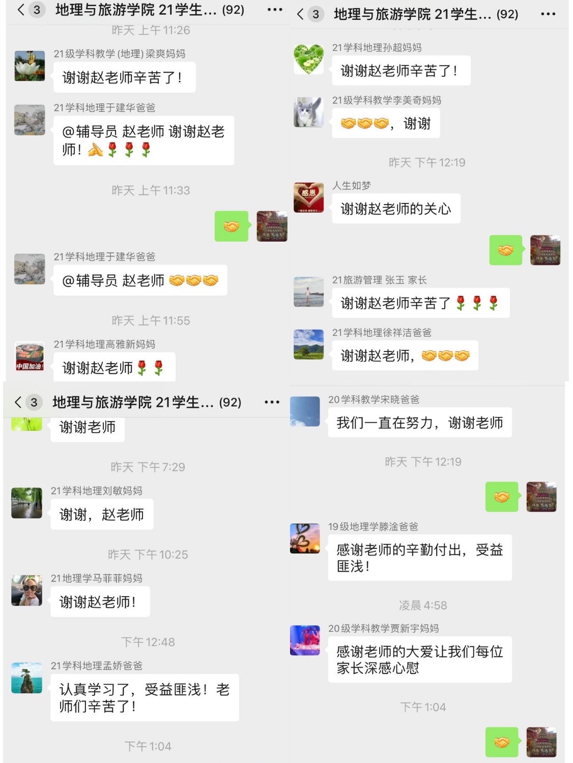 随后,赵岩老师重点讲解了如何塑造智慧的家庭教育。她强调,智慧的家庭教育要求家长能够锻炼子女的自立、增强子女的自信、实现子女的全纳,并呼吁各位家长应当主动承担起教育责任,对子女进行家庭教育时应坚持“适度”原则,与子女民主沟通,给予子女更多的鼓励和认可。最后,赵岩老师对参会的各位家长表示感谢,各位家长对学院召开的线上家长会给予充分肯定,表示将积极参与家校协同育人机制建设,主动与辅导员保持联系,做好子女生活的陪伴和引导。