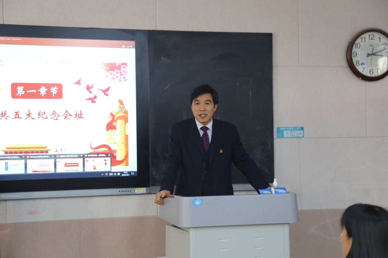 研究生党支部联合党建新媒体中心于2021年12月1日在S楼214教室举办“从百年党史,行万里征途—寻梦中共五大会址”主题党日活动。活动由研究生党支部书记马振秀同志主持,谢清月同志担任主讲人,党委书记苏占兵、研究生辅导员赵岩出席学习会议,研究生党支部与党建新媒体中心成员全体参与。
