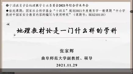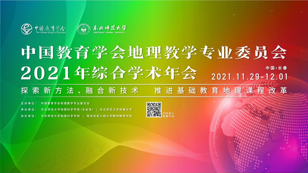 2021年11月29日-12月1日,由中国教育学会地理教学专业委员会主办,东北师范大学地理科学学院、东北师范大学附属中学承办的“中国教育学会地理教学专业委员会2021年综合学术年会”成功举行。本次会议以“探索新方法、融合新技术、推进基础教育地理课程改革”为主题,各高校教师、研究生、本科生;各省(市、区)地理教研员、中学地理教师;相关出版社、杂志社、地理教学资源研发机构等相关人员参加了会议。