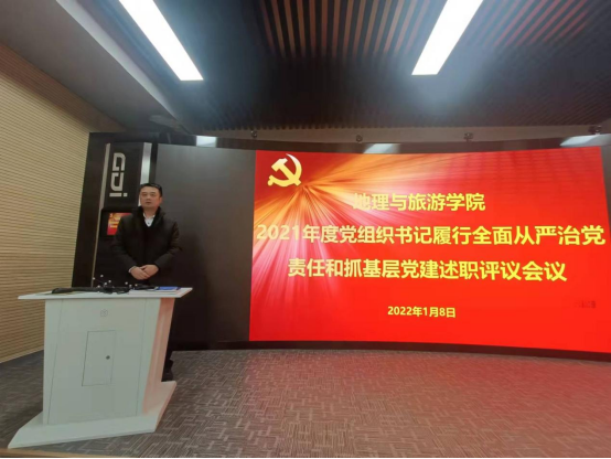 会上,教工党支部书记刘志刚,研究生党支部书记马振秀,本科生党支部书记田青分别从履职情况、存在的主要问题及原因、下步工作打算三个方面对2021年履行全面治党责任和抓基层党建进行了述职。