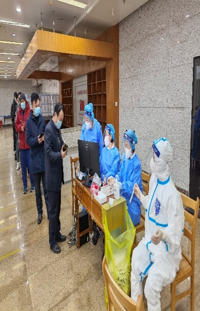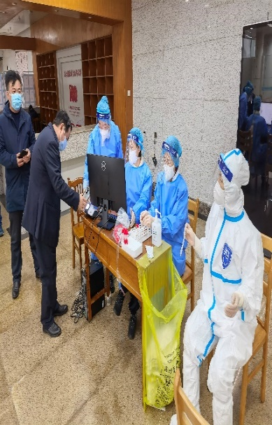 在老师和同学们的积极配合下,学院高效完成了多次核酸检测。可亲可敬的老师们刚下课堂,又上战场。教工党员刘志刚、孙丕苓、王宜强、杨雨蒙、李小苗、杨冬冬、邵莉莉、于深洋身着厚重防护服,冒严寒冲在防疫第一线。在保证自身安全的情况下,协助医护人员顺利开展工作,发扬热情无私的奉献精神,彰显榜样的力量。