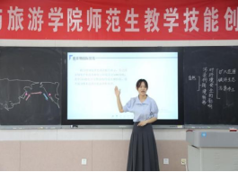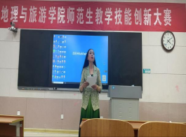 比赛设置高中组和初中组两个组别,包括固定题目模拟授课、答辩和钢笔字考查三个环节,综合考查地理师范生教学技能。比赛过程中,42名地理师范生通过模拟授课和现场抽题作答进行激烈角逐。模拟授课环节,参赛选手以别出心裁的教学设计、丰富多样的教学方法,展现出较强的教学能力;现场抽题作答环节,参赛选手沉着冷静,情真意切作答,展现出良好的个人素质。