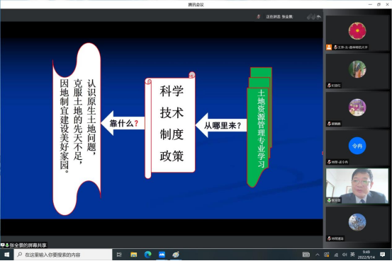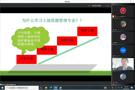 在线召开土地资源管理专业教育会。院长张全景教授担任主讲人,土地资源管理系(教学)系主任王萍主持,土地管理系全体教师和2022级土地资源管理专业全体同学参加。