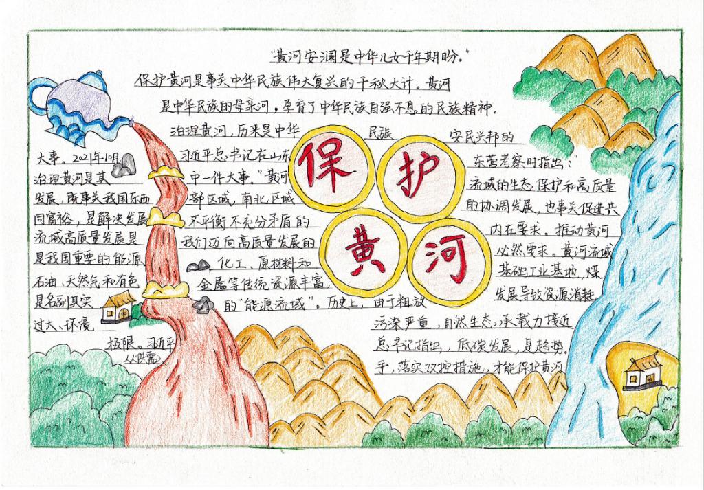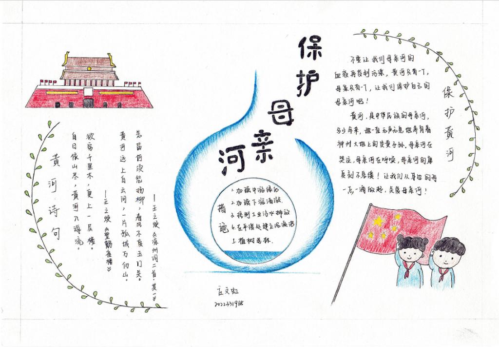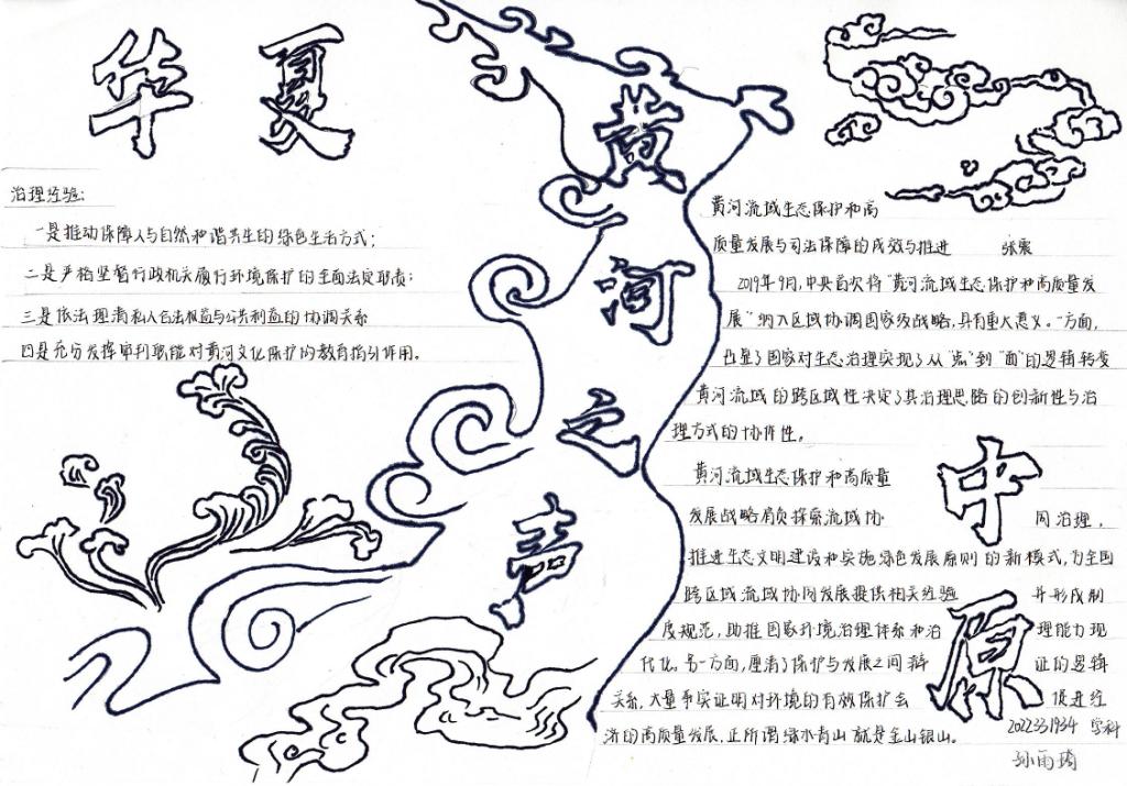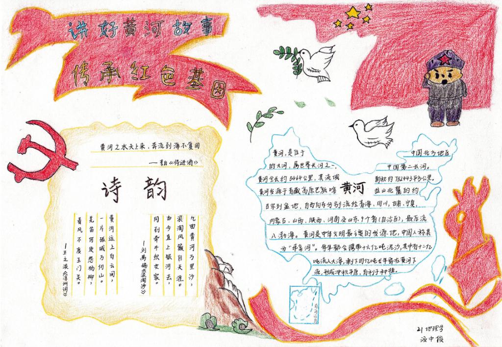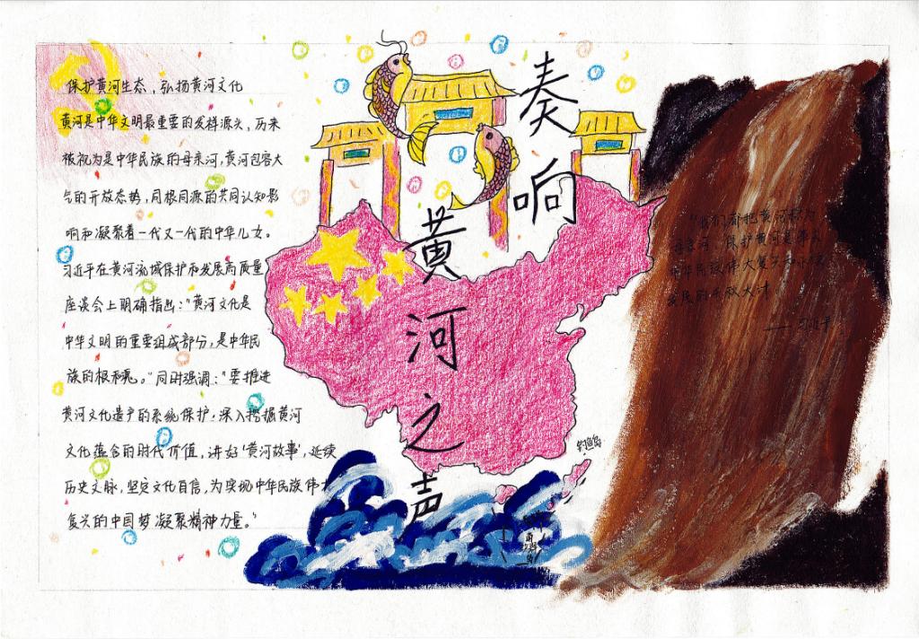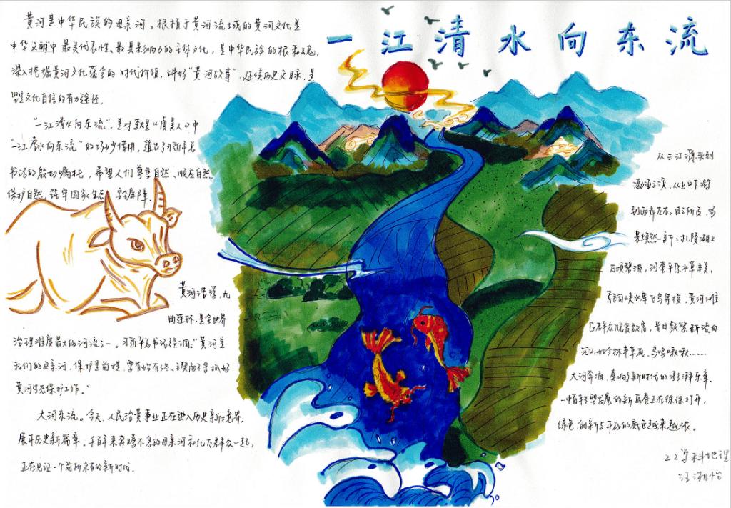 团委主办,研究生团支部承办开展了以“诗韵黄河”为主题的手抄报制作活动。此次活动旨在动员共青团员投身强国建设,号召共青团员保护母亲河,争做生态文明的传播者、争当生态保护的捍卫者、勇当生态建设的实践者,在加强黄河流域生态环境保护、传承弘扬黄河文化等方面勇挑重担、建功立业,为助推黄河流域生态保护和高质量发展战略贡献青春力量。