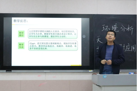 青年教师的教学风采,赢得现场评委专家和观摩教师的阵阵掌声。经评委专家对参赛教师进行现场打分,潘涛、赵林、王云倩3位老师获得一等奖并代表学院参加校赛,郭付友、李瑞平、马运佳、马振华、孟翔晨5位老师获得二等奖;张瑜、邵莉莉、徐凯、赵庆磊、孙博雯、王振海6位老师获得三等奖。