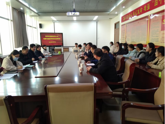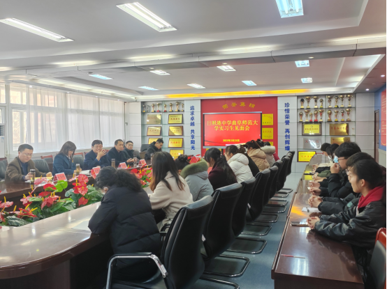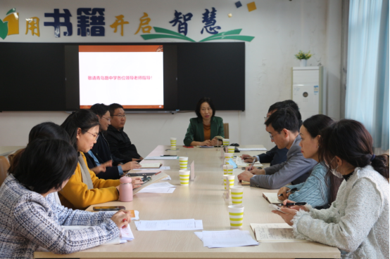 领导、老师在日照山海天旅游度假区青岛路中学座谈交流