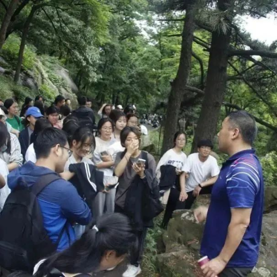 在沂源鲁山地质公园,刘飞老师围绕鲁山主体岩性、新太古代早期岩浆侵入活动遗迹及研究意义进行了系统讲解,引导同学们从认知,分析,推广和联想四个层次出发,循序渐进,将所学知识运用到野外实习过程当中,加深对知识的理解,达到提高教学质量的目的。