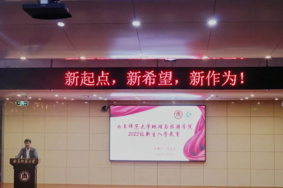 讲座上,苏占兵首先对每一位2023级新同学的到来表示热烈的欢迎,他通过引用三个通俗易懂的故事,以幽默风趣的方式给同学们带来欢笑的同时也让同学们学习到了深刻的人生哲理,一是要对自己的大学四年有明确的框架规划,调整自我认知,清晰定位,在对新的征程感到欣喜好奇的同时,也需要同学们尽快地适应新环境,融入曲园大家庭。二是希望同学们要保持谦逊的姿态,潜心求学,用心耕耘学科的核心部分,不断发展和认识自己,做有理想、能吃苦、肯奋斗的地理学子。三是要对自己的学校保持充分的自信和归属感,赓续圣人先贤的优秀文化传统。最后他深情地嘱托地理学子:生而逢盛世,青年当有为,要牢记学而不厌,诲人不倦的校训,厚植曲园学子素养,担当民族复兴大任。