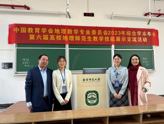 派出的地理科学(师范)专业2020级叶繁同学、2021级王婧同学分别在李剑老师和刘庆果老师的指导下,获得B组第一名和D组第二名的优异成绩。叶繁同学被推选参加综合学术年会展示交流活动。据悉,全国师范高校仅有四位优秀同学面向全国地理教学界进行展示。