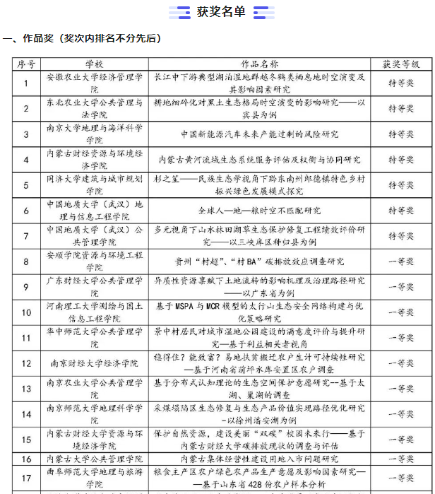 12月1-2日,由中国自然资源学会主办的“国地杯”第五届大学生自然资源科技作品大赛决赛于哈尔滨市成功落下帷幕。本届大赛以“自然资源保护利用与中国式现代化”为主题,共收到有效作品186份,经过大赛评审组的层层遴选、优中选优,最终确定67项作品入围决赛,33项作品授予优秀作品奖。