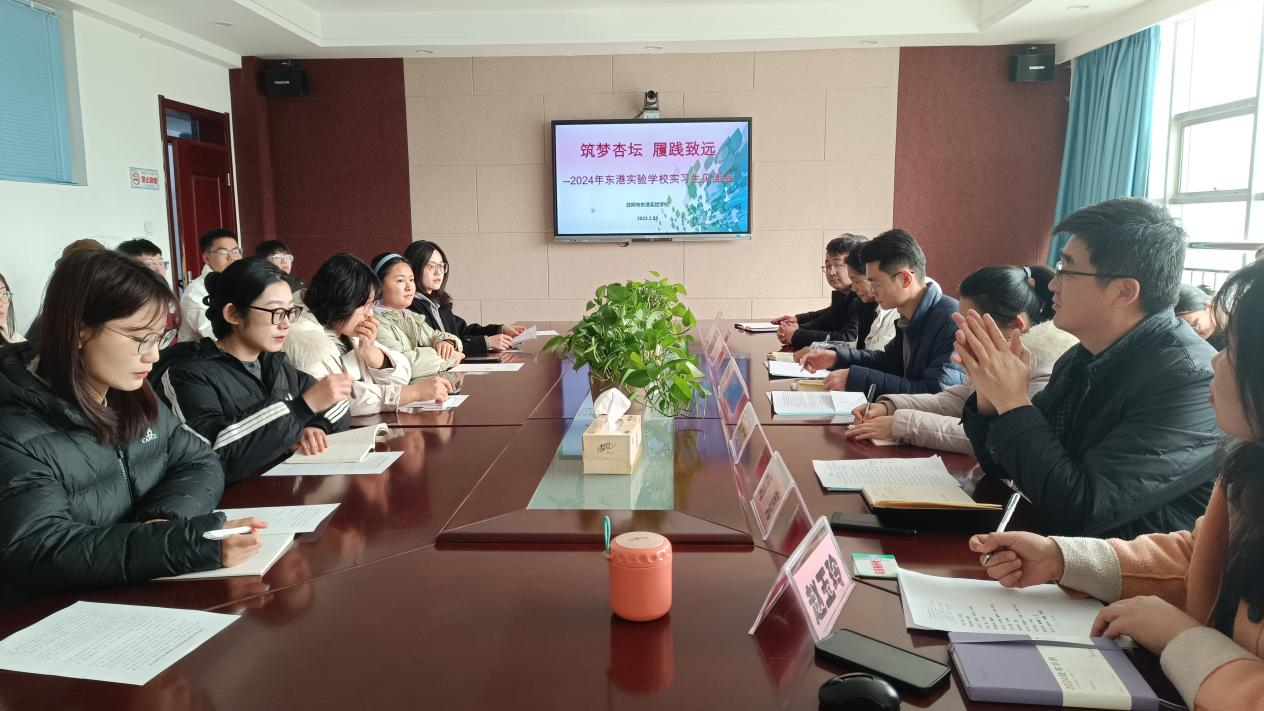 东港实验学校校长王瑞芹,副校长时亮,教导处赵玉玲和地理教师代表欢迎番茄社区
