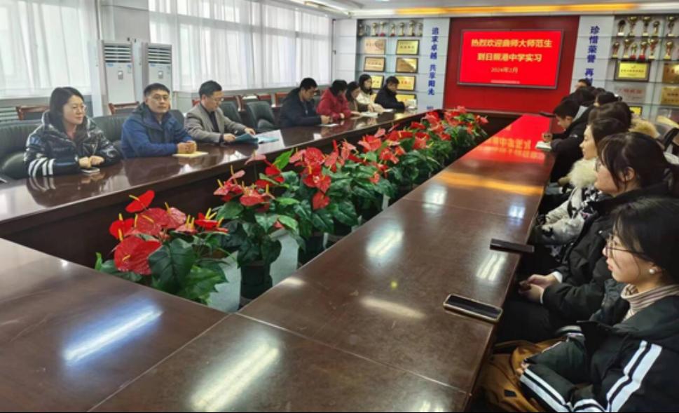 莒县一中校长许慎德、地理学科主任滕全贵、教科研主任李成栋欢迎实习学生