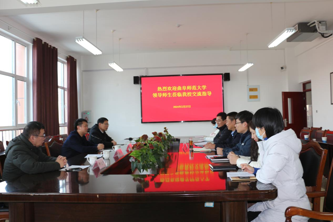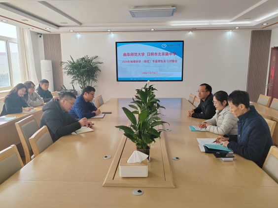 莒县一中校长许慎德、地理学科主任滕全贵、教科研主任李成栋与吴军副院长交流教育实习等合作事宜
