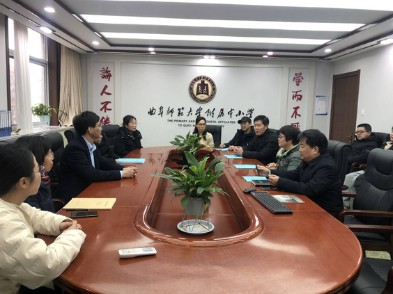 附属实验学校校长刘为利、副校长王杰、教务处主任王萍和地理教师代表欢迎番茄社区