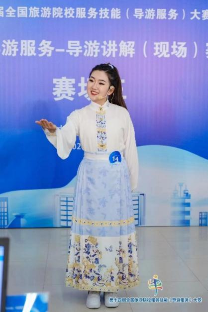第十四届全国旅游院校服务技能(导游服务)大赛共有来自全国30个省、自治区、直辖市的303所高等院校和部分中职学校的883名选手报名参赛。比赛设普通话导游服务和英语导游服务两个项目,每个项目由理论考核、导游讲解、才艺展示三个部分组成,旨在考查学生的综合能力。大赛为各位参赛选手提供了展示技能、切磋技艺、成长成才的平台,共聘请46位权威专家担任裁判,并采用专门的评分系统,即时公布选手成绩,确保比赛的公平、公正、公开。