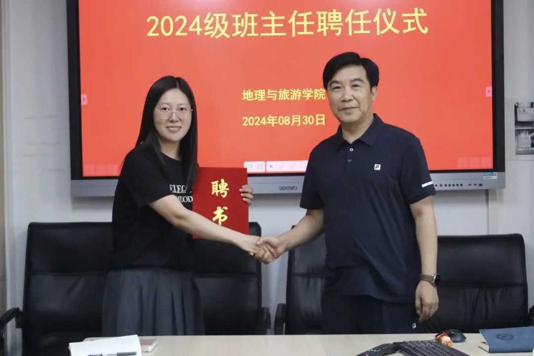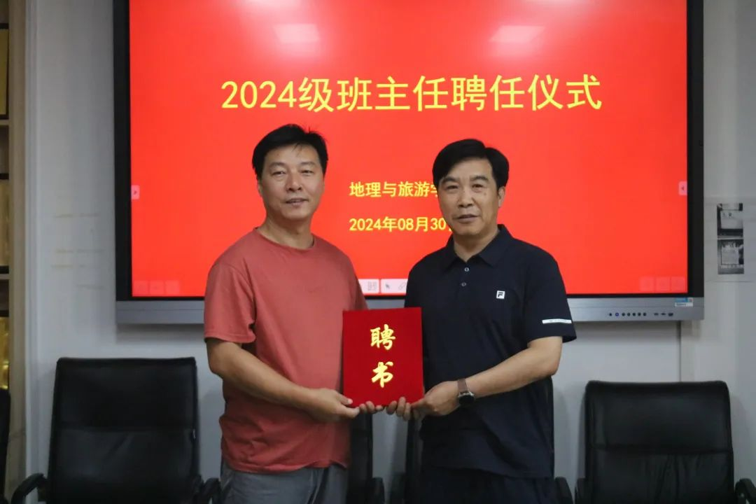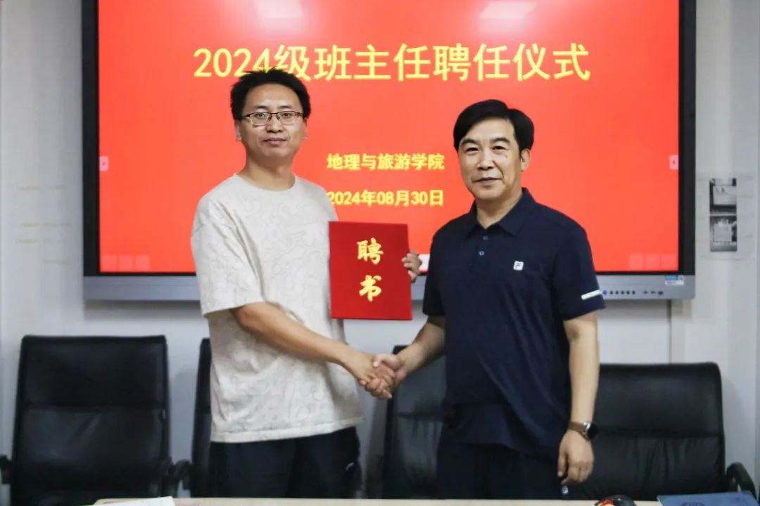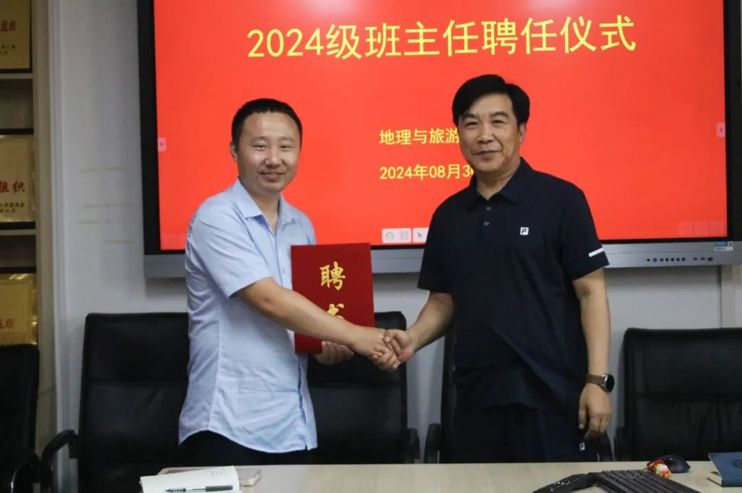 活动伊始,刘伟向各位踊跃担任2024级新生班主任的教师表示感谢,并介绍了2024级新生的基本情况和学院多年来坚持的班主任工作情况以及在学生管理育人成才方面发挥的独特作用。苏占兵为各班班主任颁发聘书并向他们表示祝贺,并于会上高度肯定了各位青年教师积极担任班主任的做法。