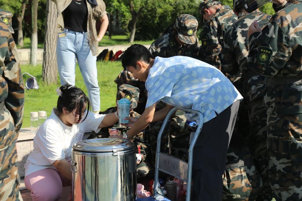 学生会工作人员为同学们接水