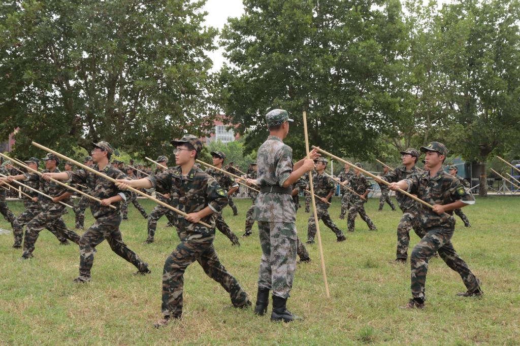 同学们进行棍术选拔训练