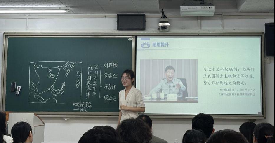 本科生王婧和由京鹭分别以《维护国家海洋空间资源安全》和《大气热力环流》的授课过程为题进行了授课展示。