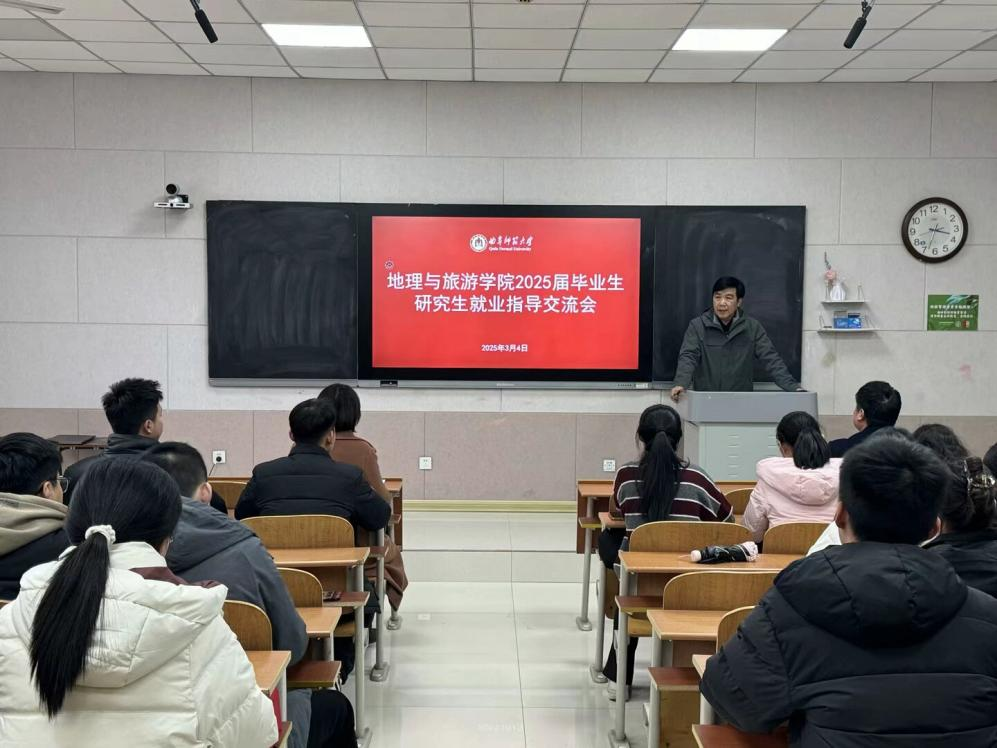 于JS214召开2025届研究生就业指导交流会。党委书记苏占兵、党委副书记刘伟出席本次交流会,2022级全体研究生积极参加,会议由研究生辅导员赵岩主持。