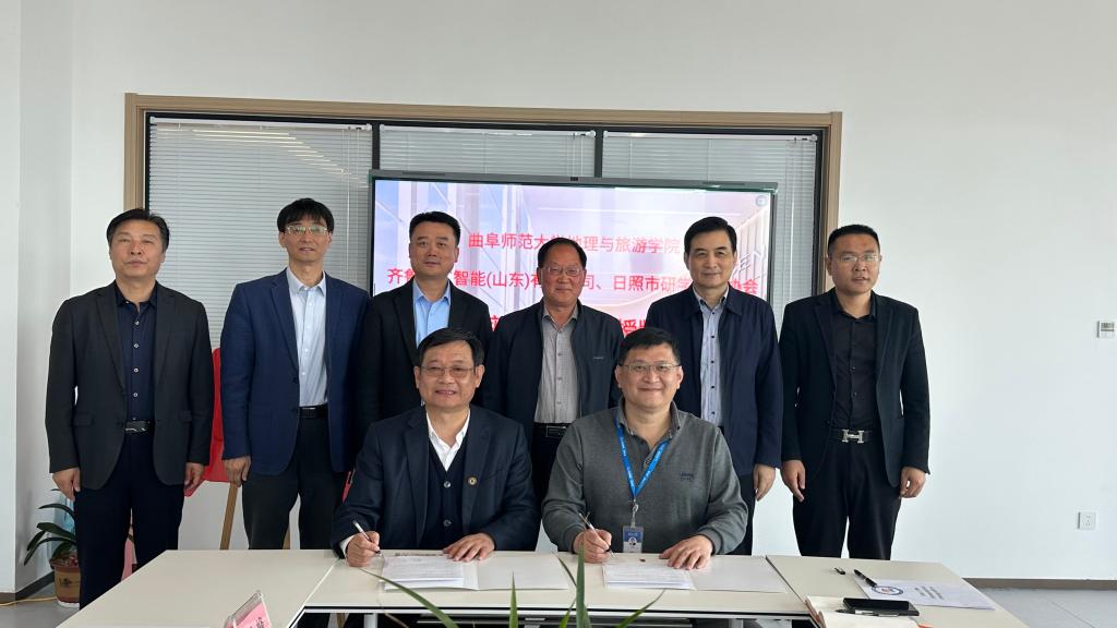 与齐鲁人工智能(山东)有限公司举行共建教学实习基地签约授牌仪式。学院院长张全景、副书记刘伟、副院长吴军、工会主席石峰出席签约仪式并开展访企拓岗活动。日照市人民政府参事、日照市科学技术协会原主席徐立永、日照市委统战部原副部长、民宗局局长周全、山东省研学旅行协会会长张化勇、山东省研学旅行协会执行秘书长马学福、日照市研学旅行协会专家委员会特聘专家秦玉刚出席,仪式由日照市研学旅行协会会长、齐鲁人工智能(山东)有限公司董事长毛宗坤主持。